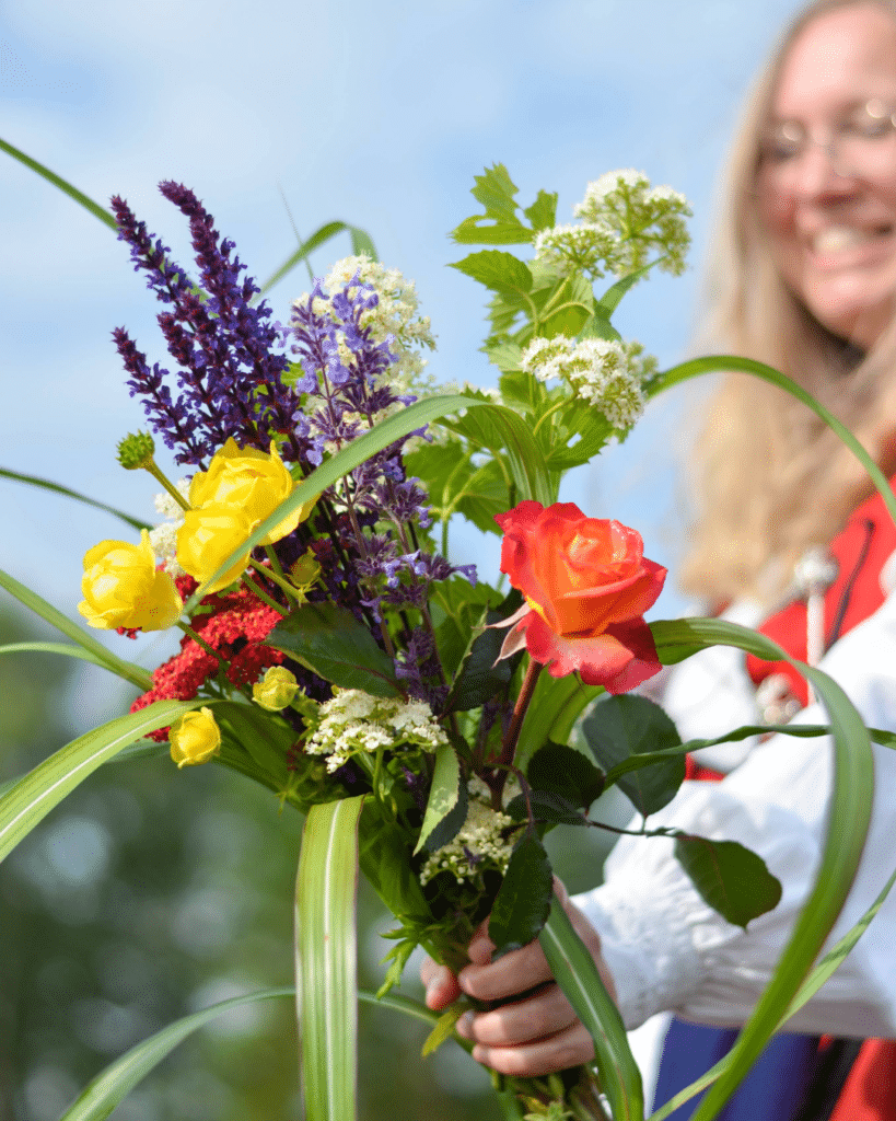 När sommaren är som allra vackrast och ljuset dröjer sig kvar långt in på kvällen, fågelsången aldrig riktigt tystnar och växterna står i sin fulla prakt – då är det dags att fira midsommar. Just nu är våra odlingsbäddar fulla av liv. Så vi plockade ihop en midsommarbukett fylld av favoriter: doftande rosor, färgsprakande perenner och lite vild grönska. Allt direkt från bäddarna.