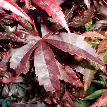 Utseende: Mycket vackra, blodröda blad som håller färgen väl.