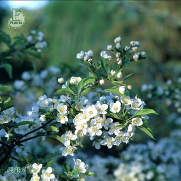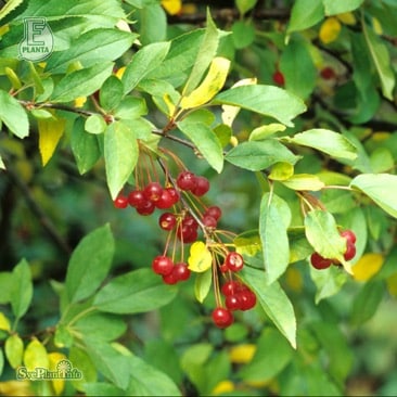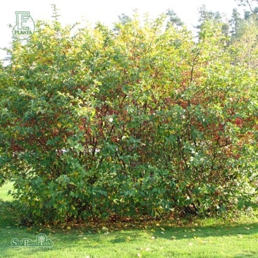 Utseende: Rikligt med vita blommor i maj. Mörkröda, små frukter. Lätt tornig. Vacker orangeröd höstfärg.