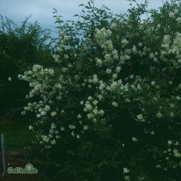 Start > Sortiment > Buskar > Philadelphus lewisii ’Waterton’Philadelphus lewisii ’Waterton’ norrlandsschersmin Produktinformation Växtsätt: Brett upprätt växtsätt. Utseende: Vita svagt doftande blommor i juni-juli. Storlek: Höjd 2-3 m. Växtläge: Sol-halvskugga. Zon (härdighet): Zon 1-7.